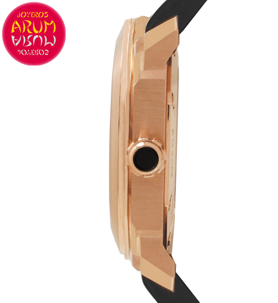Otras especificaciones :calibre 193, reserva de marcha de 50 horas, fecha a las tres, segundero central, tapa trasera transparente, deployant en oro de 18K.