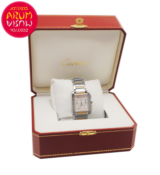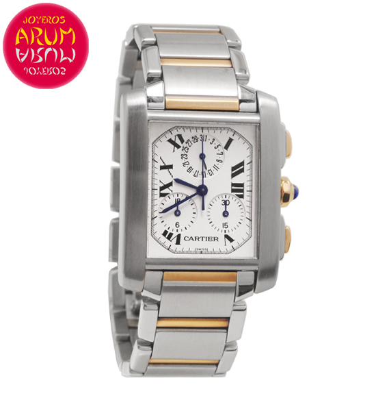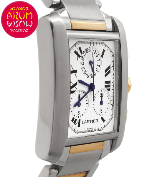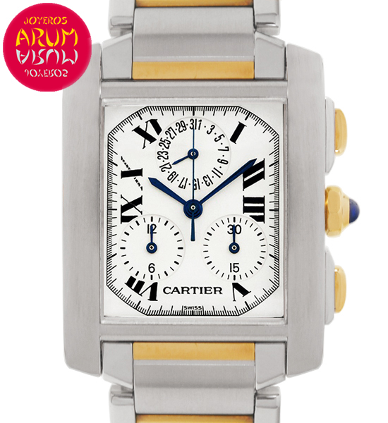 Otras especificaciones :cronógrafo, fecha a las doce, agujas de acero azulado, corona decorada con una espinela.