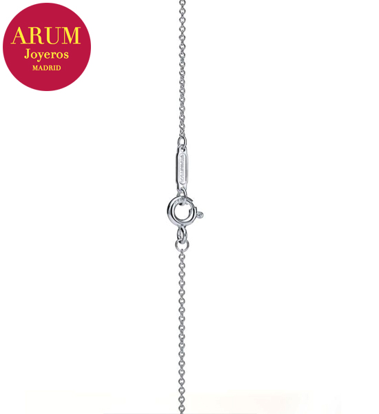 Descripción: Colgante con forma de corazón y cadena de la prestigiosa firma de joyería Tiffany & Co, realizados en plata de ley. El colgante mide 2 cm por 2,5 cm. La cadena mide 45,7 cm.