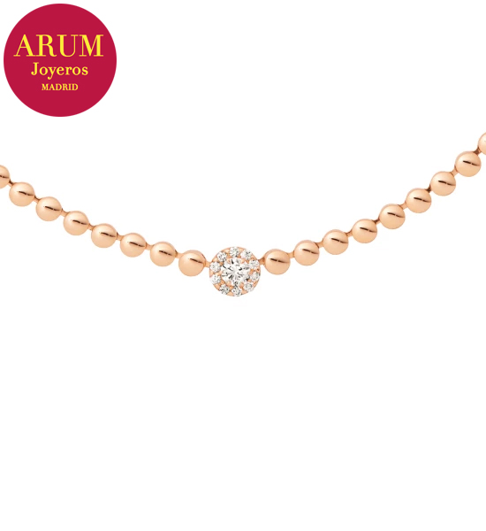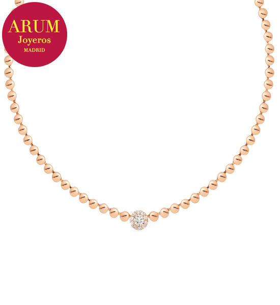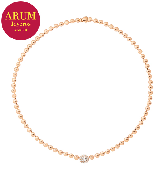 Descripción: Collar de la prestigiosa firma de joyería Wempe, perteneciente a la colección Blu Crown by Kim, realizado en oro rosa de 18K con 11 brillantes para un total de 0,80 qts (Color G- Pureza SI). Mide 42 cm de largo. Peso 49,82 grs.