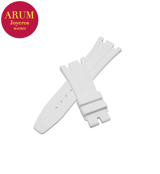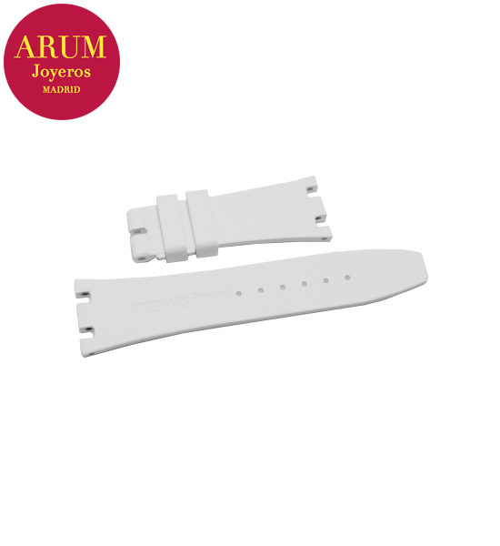 Marca :Audemars Piguet Referencia ARUM: RAC2113 Material :Caucho Color :blanca Longitud (mm) :95 – 55 Medida entre asas (mm) :22 Medida hebilla/deployant (mm) :16
