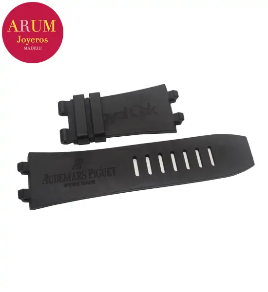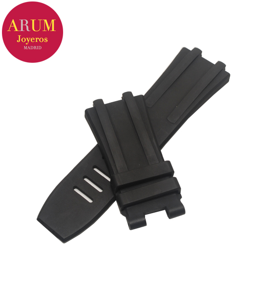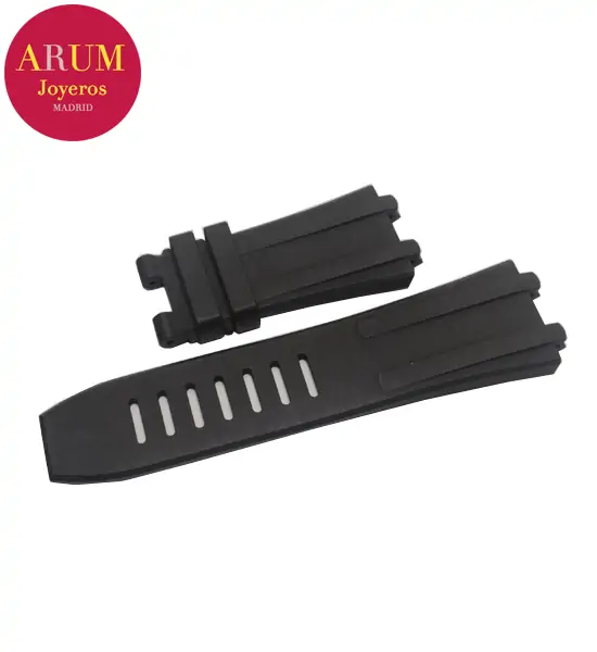 Marca :Audemars Piguet Referencia ARUM: RAC2102 Material :Caucho Color :negro Longitud (mm) :110 – 60 Medida entre asas (mm) :30 Medida hebilla/deployant (mm) :24
