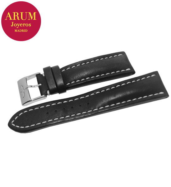 Marca :Breitling Referencia ARUM: RAC2130 Material :Piel Color :negro Longitud (mm) :130 – 75 Medida entre asas (mm) :24 Medida hebilla/deployant (mm) :20