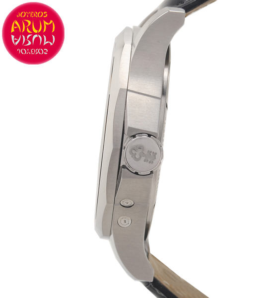 Otras especificaciones :calibre CO503, reserva de marcha de 42 horas, fecha indicada mediante manilla central, mes indicado mediante subdial a las seis, segundero central, marcas luminiscentes, tapa trasera transparente.