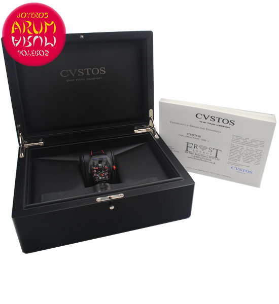 Otras especificaciones :calibre Cvstos 551, reserva de marcha de 41 horas, acero con tratamiento PVD/DLC, fecha a las doce, función GMT (segundo uso horario) segundero central, indicadores luminiscentes, corona a rosca, tapa trasera transparente. Año 2014.