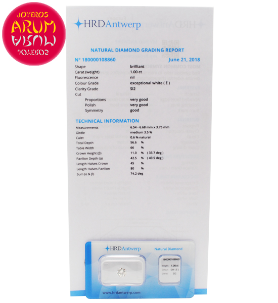 Se acompaña con certificado del AWDC (Antwerp World Diamond Centre)
