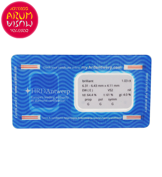 Se acompaña con certificado del AWDC (Antwerp World Diamond Centre)