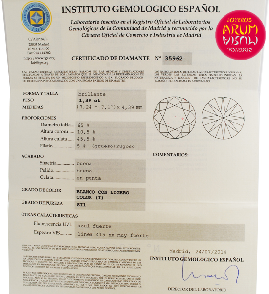 Se acompaña con certificado del Instituto Gemológico Español (IGE)