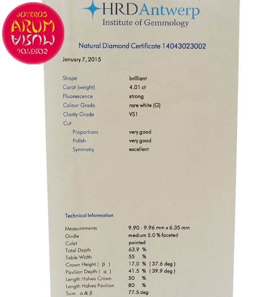Se acompaña con certificado del HRD Antwerp Institute of Gemmology.