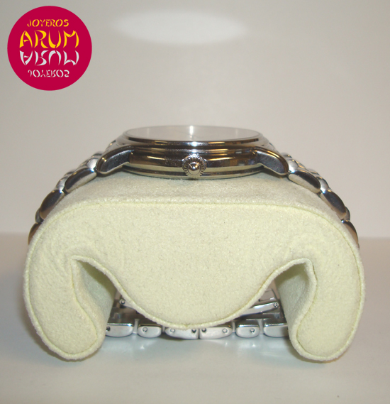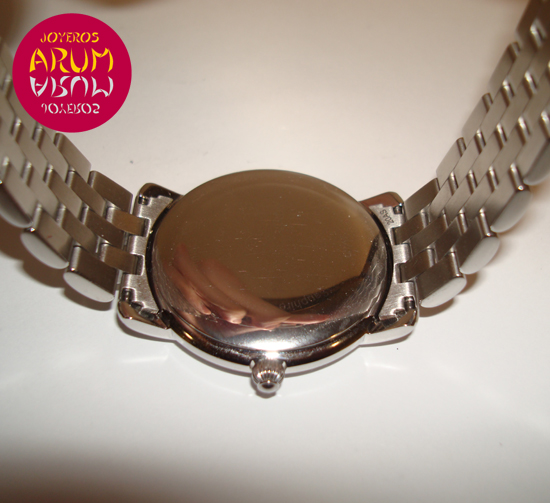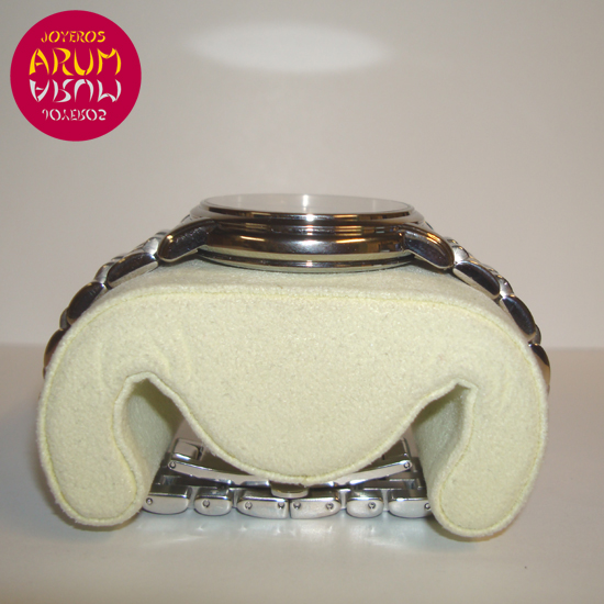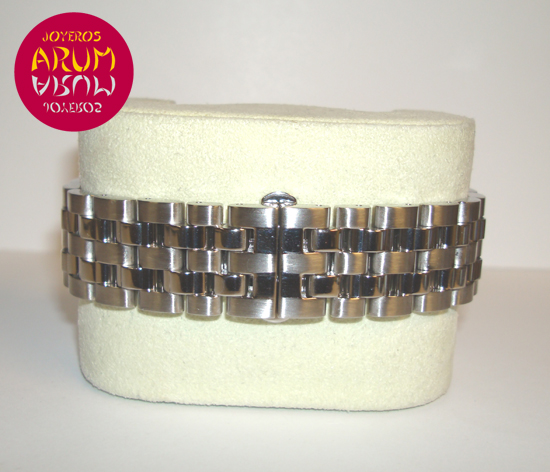 Descripción :acero, esfera plata con números romanos, cristal de zafiro, movimiento automático, segundero central, fecha a las seis, corona atornillada, diámetro 38 mm, sumergible 50 metros, correa de acero, cierre plegable oculto.