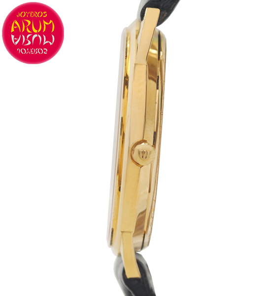 Otras especificaciones :caja de oro amarillo de 18K, fecha a las seis, segundero central.