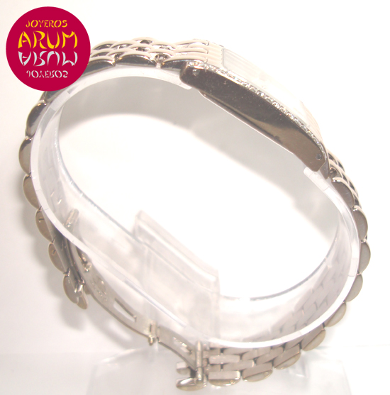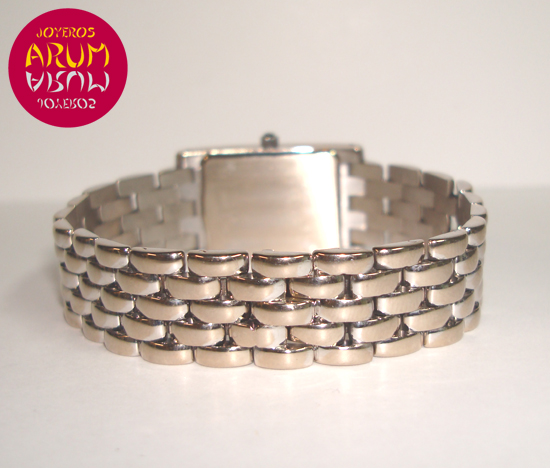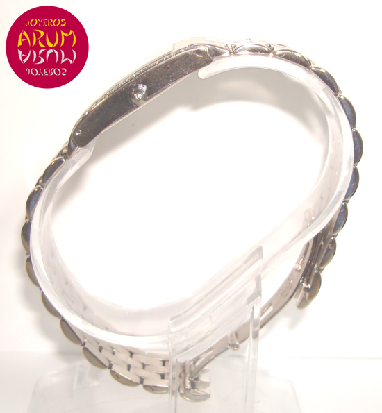 Descripción :reloj de señora, oro blanco, esfera madreperla, brillantes en el bisel, cristal de zafiro, movimiento cuarzo, diámetro 18 mm por 30 mm, sumergible 30 metros, correa de acero, cierre plegable oculto en oro blanco.