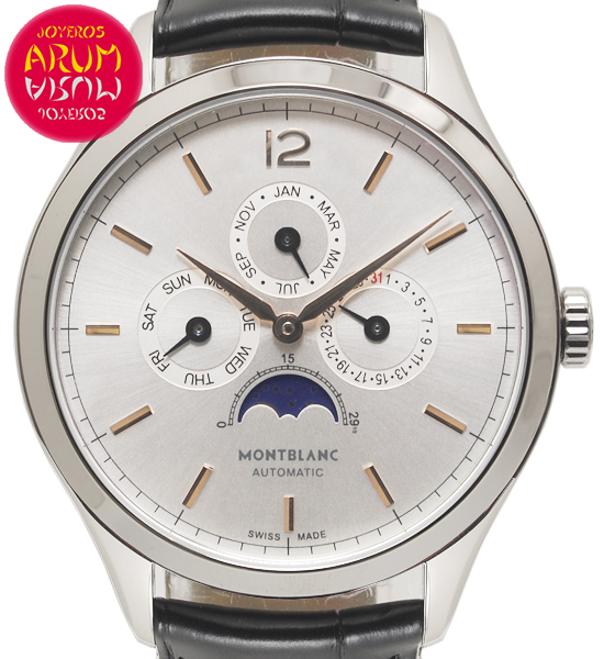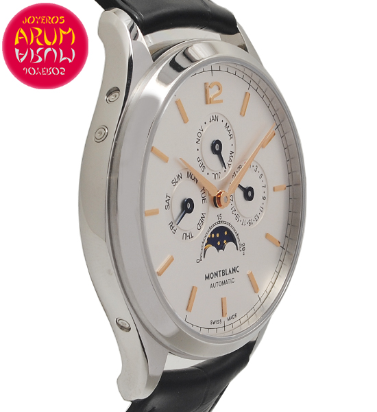 Otras especificaciones :calibre MB2918, reserva de marcha de 42 horas, calendario anual, fecha, dia, mes, fase lunar, tapa trasera transparente.