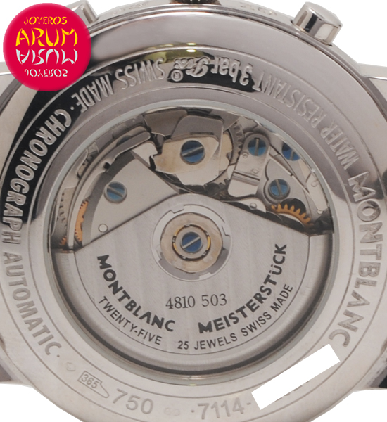 Otras especificaciones :calibre 4810 503, reserva de marcha de 42 horas, función GMT (segundo uso horario), cronógrafo, fecha a las tres, segundero pequeño a las nueve, tapa trasera transparente.