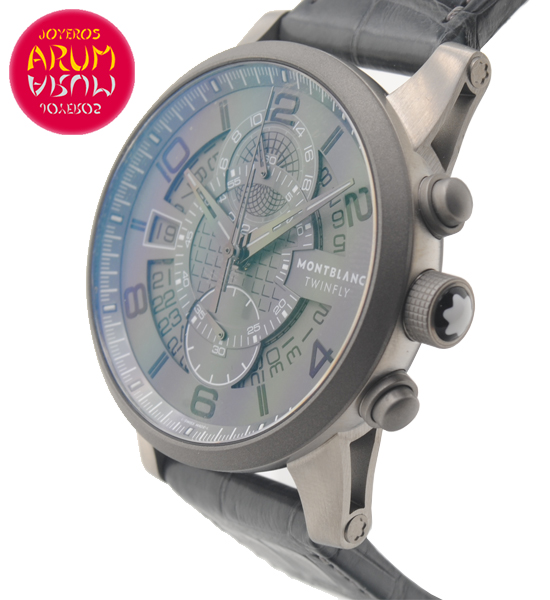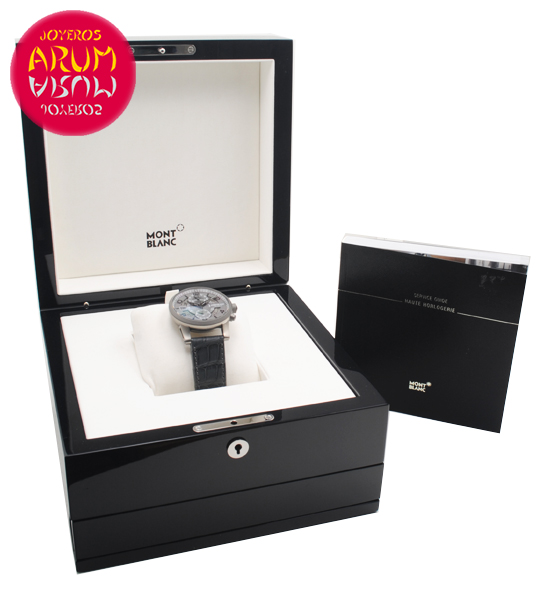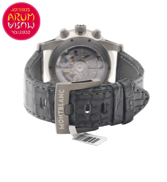 Otras especificaciones :edición limitada a 888 piezas, calibre MB LL100, reserva de marcha de 72 horas, cronógrafo, función flyback (mediciones diferentes en dos pulsaciones en lugar de las cuatro de un cronógrafo normal), segundo uso horario a las doce, fecha a las nueve con el disco visible, segundero pequeño a las seis, marcas luminiscentes, corona con el anagrama de Montblanc, tapa trasera transparente.