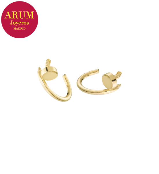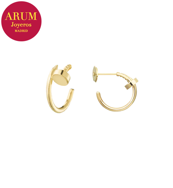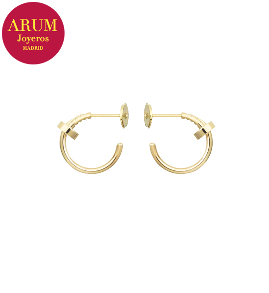 Descripción: Pendientes de la prestigiosa firma de joyería Cartier, perteneciente a la colección Just Un Clou, realizados en oro amarillo de 18K. Diámetro interior 12,75 mm. Peso 5,2 grs.