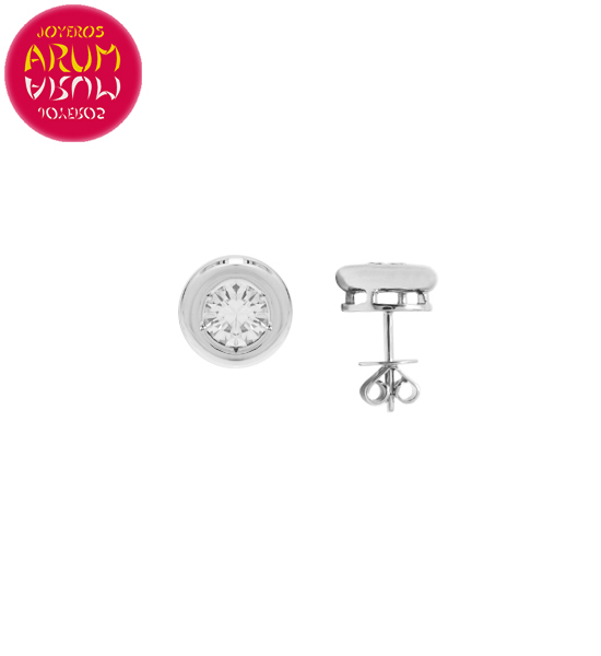 Descripción: Pendientes de chatón realizados en oro blanco de 18K (peso 9,81 grs.) con un diamante talla brillante de 1,08 qts. (Color G, Pureza VVS2), y un diamante talla brillante de 1,10 qts. (Color H, Pureza VS1)