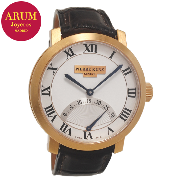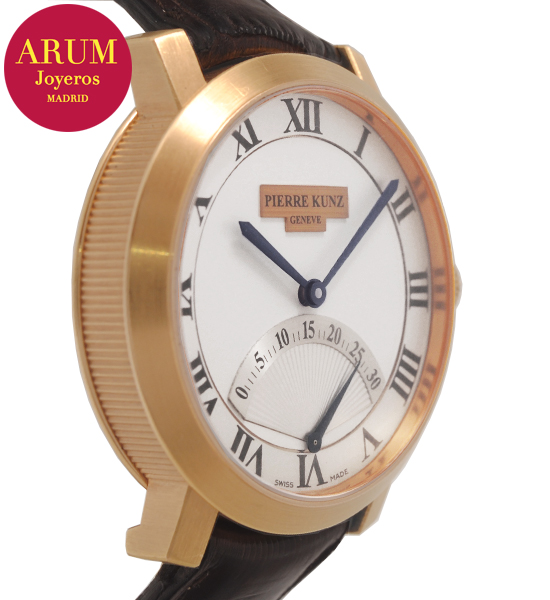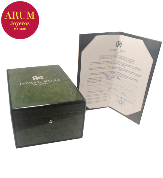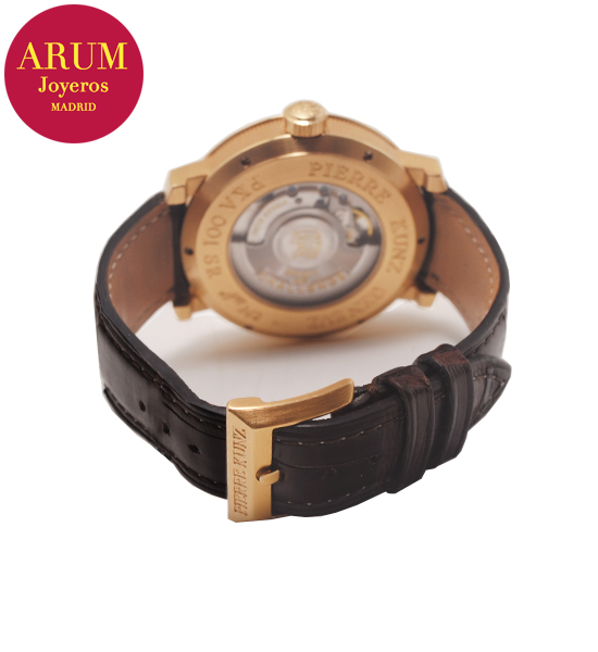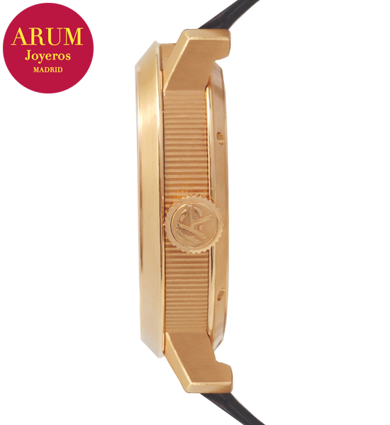 Otras especificaciones :segundero retrógrado con sistema de salto (cuando el segundero llega al final de la cuenta de treinta segundos vuelve a la posición inicial para reiniciar una nueva cuenta), agujas de acero azulado, tapa trasera transparente, caja y hebilla en oro de 18K. Año 2007.