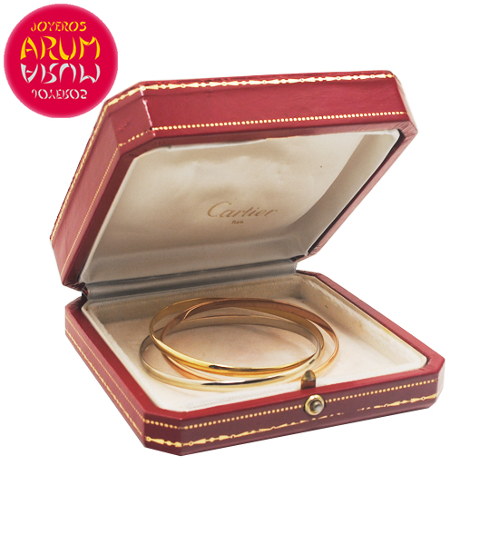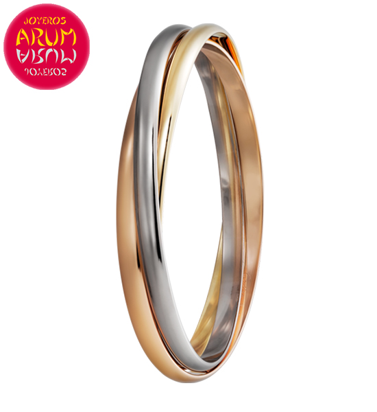 Descripción: Pulsera de la prestigiosa firma Cartier perteneciente a la colección Trinity formada por tres aros entrelazados realizados en oro amarillo de 18K, oro rosa de 18K y oro blanco de 18K. El diámetro de la pulsera es de 6 cm. Está firmada en el interior.