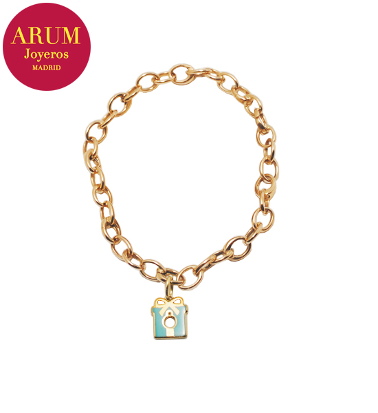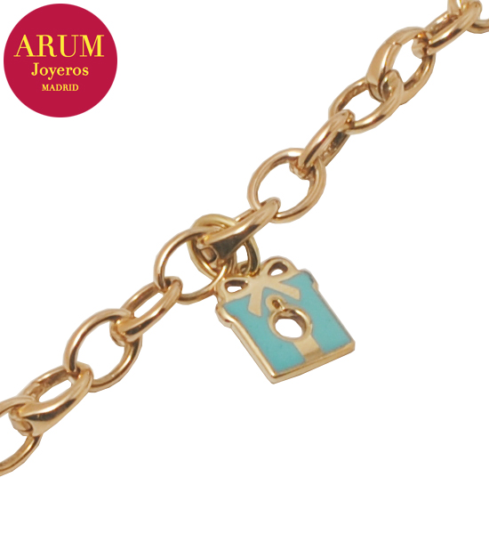 Descripción: Pulsera de la prestigiosa firma de joyería Tiffany & Co de eslabones ovalados realizada en oro rosa de 18K con una pequeña caja de regalo realizada también en oro de 18K y esmalte azul. La pulsera mide 19 cm y pesa 12,8 grs.
