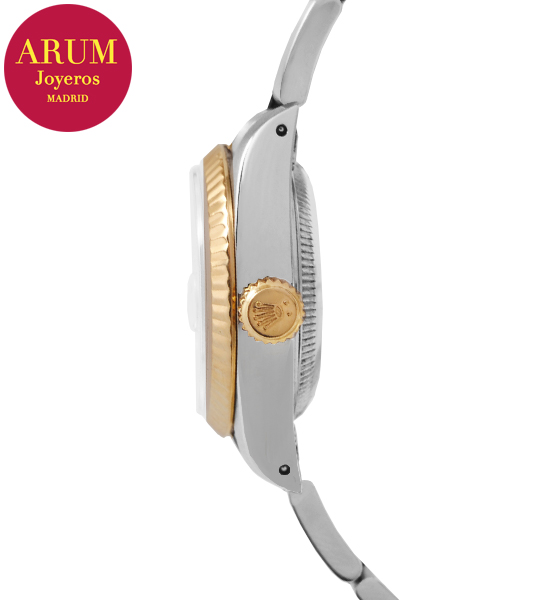 Otras especificaciones :bisel estriado, fecha a las tres, lupa en la fecha, segundero central, corona a rosca. Año 1991.