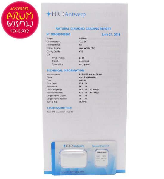 Se acompaña con certificado del HRD Antwerp World Diamond Centre.