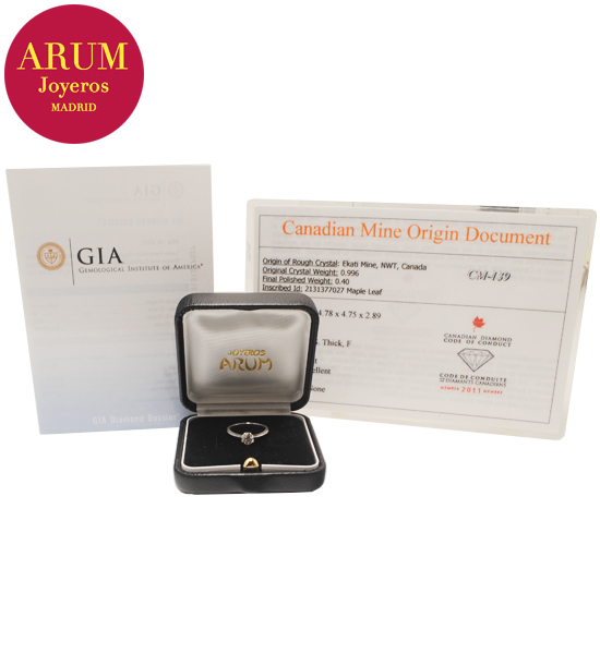 Descripción: Solitario realizado en oro blanco de 18K con un diamante talla brillante de 0,40 qts (Color G, Pureza VS2)