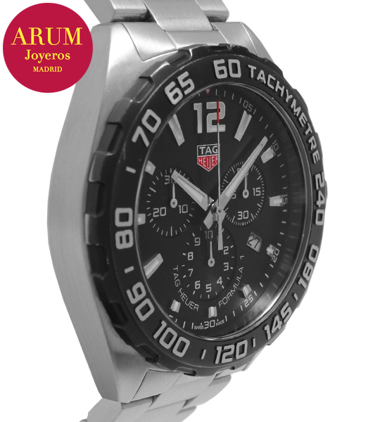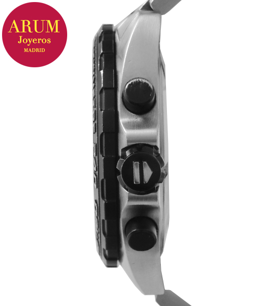 Otras especificaciones :cronógrafo, fecha a las cuatro, segundero pequeño a las tres, marcas luminiscentes, bisel con taquímetro, corona a rosca. Año 2018.