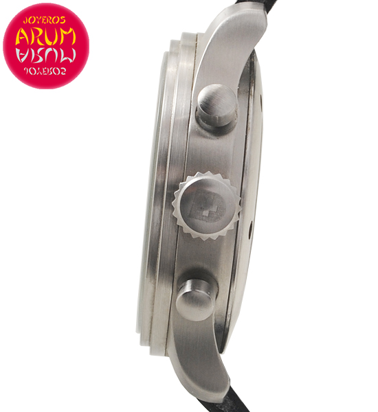 Otras especificaciones :calibre Valjoux 7753, cronógrafo, fecha entre las cuatro y las cinco, segundero pequeño a las nueve, marcas luminiscentes, tapa trasera transparente. Año 2005.